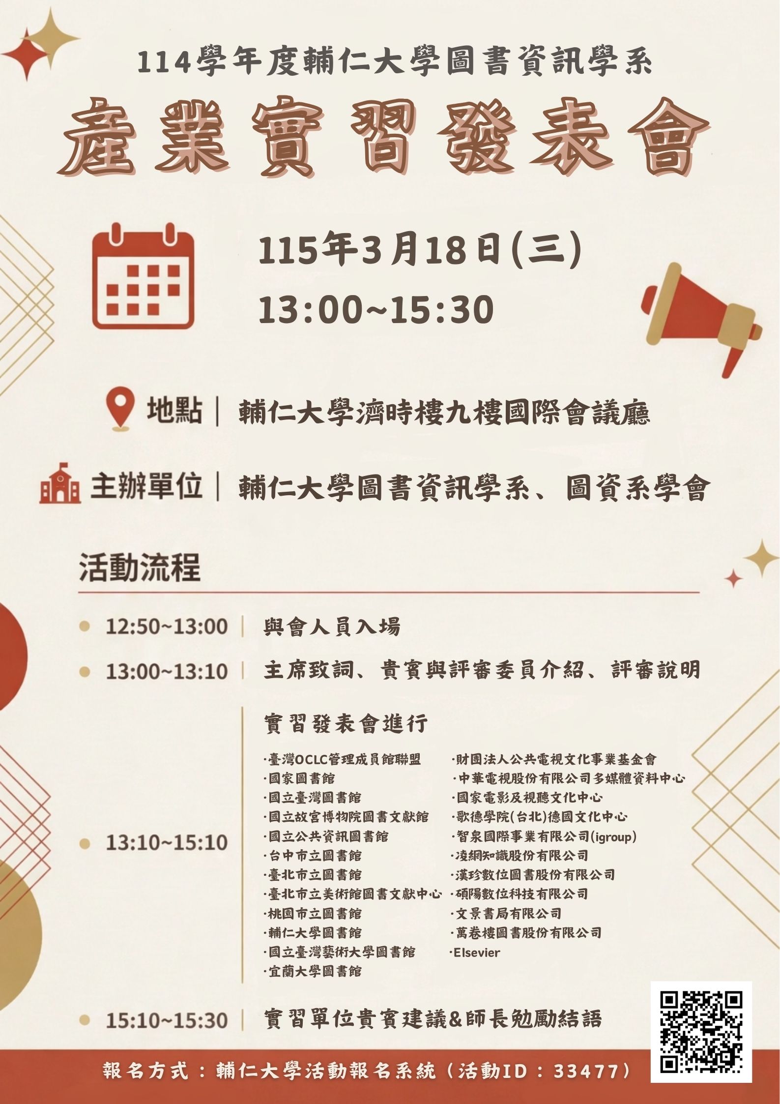 114學年度輔仁大學圖書資訊學系產業實習發表會